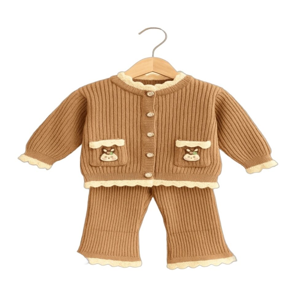 Keep your little one warm and stylish this winter with this adorable 2-piece knit winter set for girls. Made from soft, warm and skin-friendly fabric, this set includes a ribbed full-sleeve cardigan-style top and matching joggers designed for comfort and cuteness.