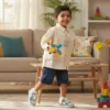 This boys shirt is designed with a premium solid beige tone combined with stylish animal print panel detailing at the front and bottom. The structured collar and button-down design give a smart layered look while keeping your child comfortable. Made from soft fabric, this garment is ideal for daily wear, outings, or special occasions. A perfect blend of comfort, warmth, and trendy fashion for modern boys