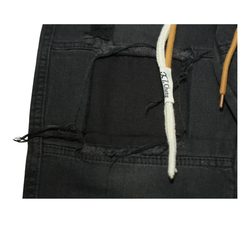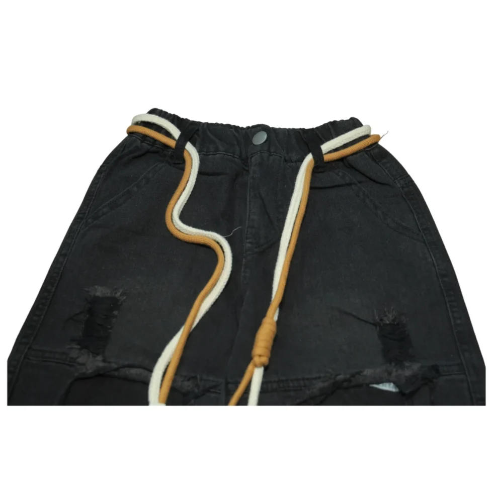 The elastic waistband with an adjustable drawstring ensures a secure and comfortable fit, making dressing quick and easy. Stylish distressed details and contrast patch accents add a modern, playful look that pairs perfectly with t-shirts, shirts.