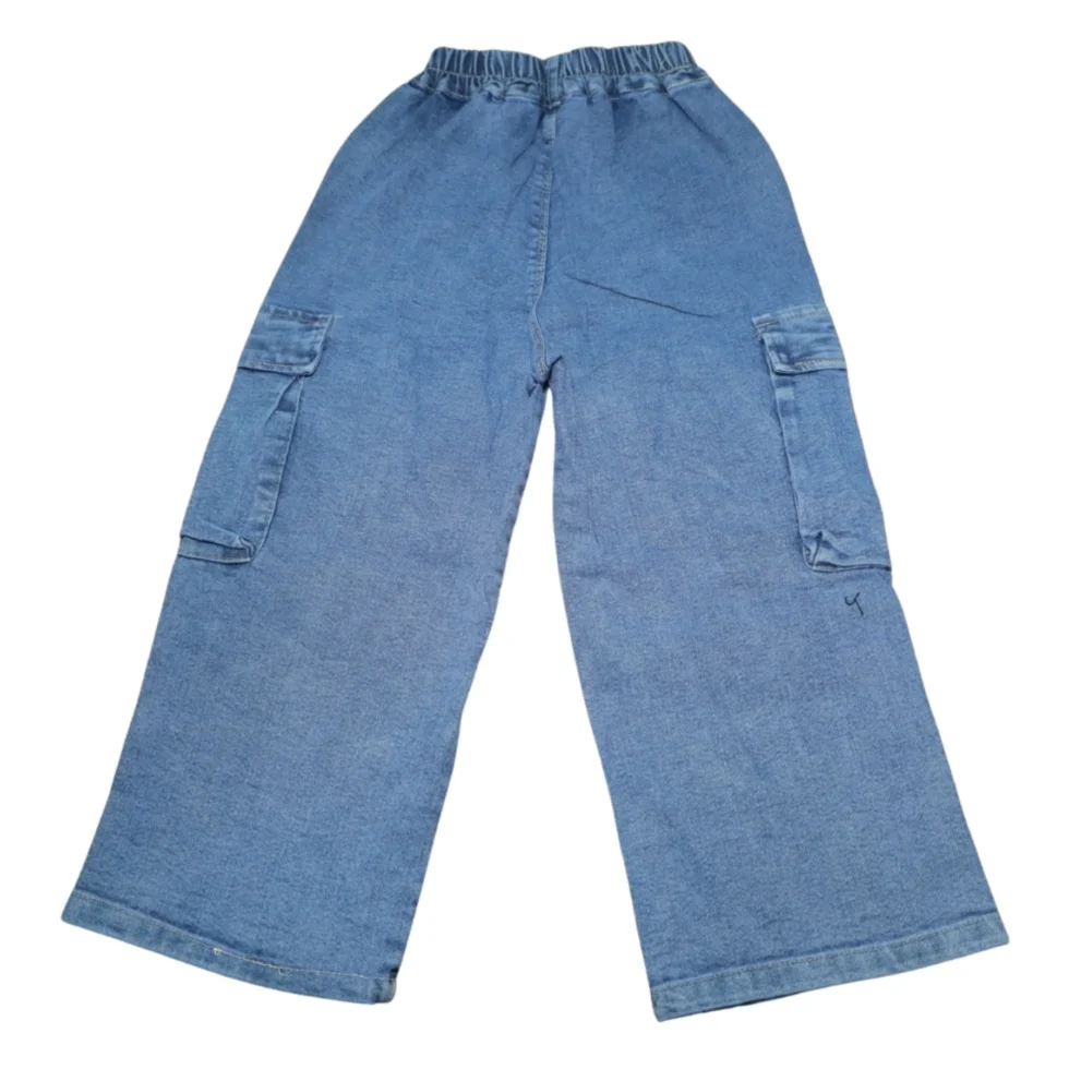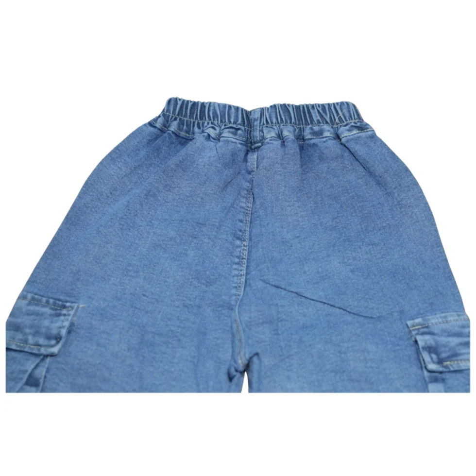 Crafted from soft yet sturdy denim fabric, they are comfortable for all-day wear and suitable for multiple seasons. The elastic waistband ensures a secure and flexible fit, while the functional cargo pockets add both fashion and convenience. Perfect for school, playdates, shopping, or everyday casual wear, these children’s jeans pair effortlessly with a variety of tops and shoes.