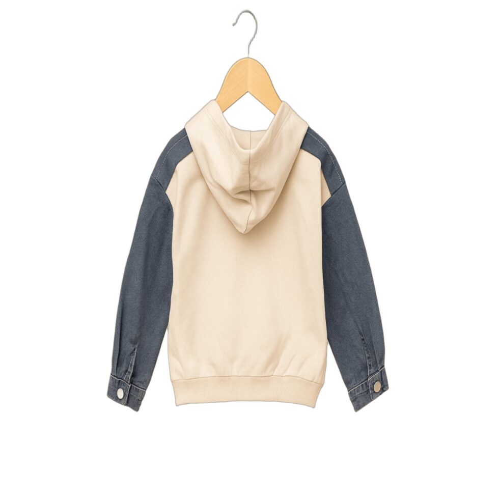 Upgrade your child’s everyday wardrobe with this Kids Denim Sleeve Hoodie Sweatshirt, a perfect blend of comfort and modern street style. Designed with a soft solid-color body and trendy denim contrast sleeves, this hoodie delivers a fashionable layered look while keeping kids cozy all day long.
