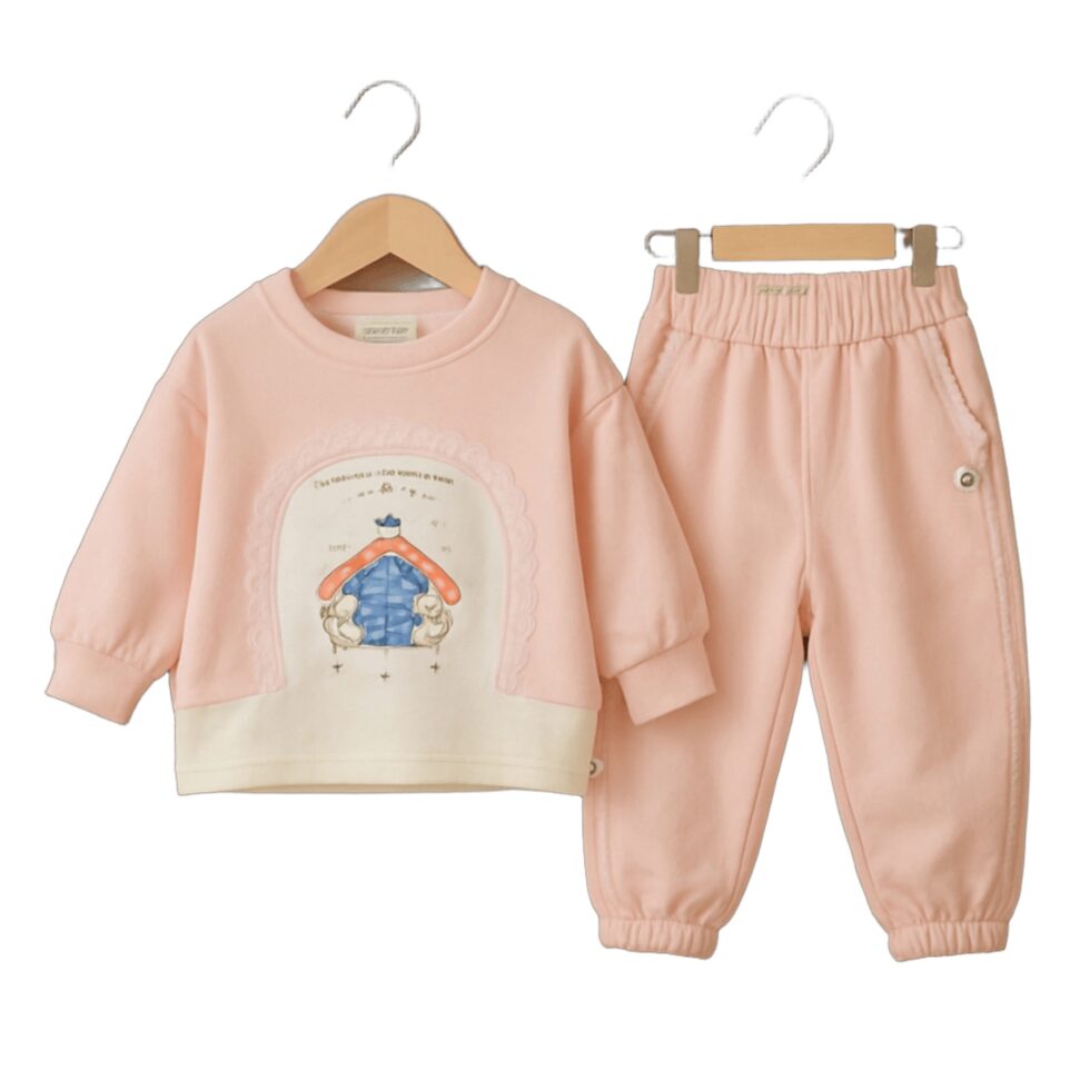 Dress your little ones in comfort and cuteness with this Kids Sweatshirt & Jogger Set, designed for cozy days and playful moments. This charming 2-piece outfit features a soft pastel sweatshirt with an adorable cartoon illustration and matching jogger pants for a coordinated, stylish look.