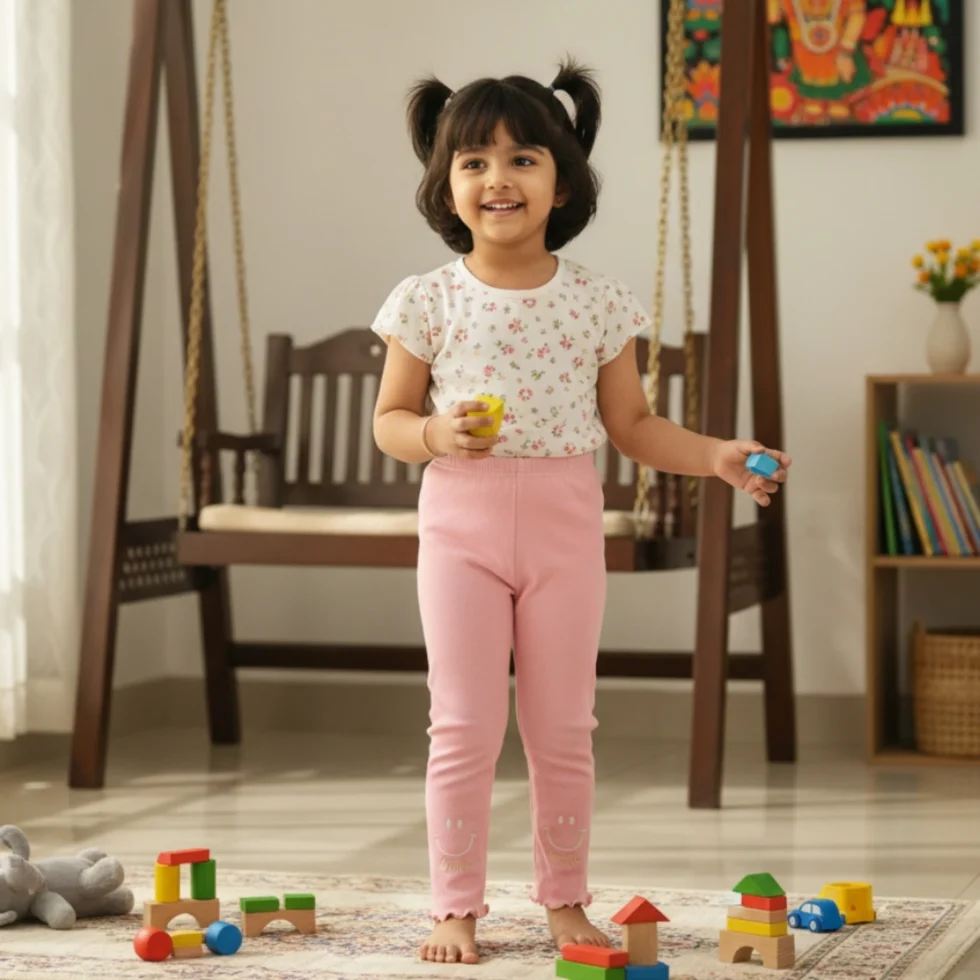 Give your little one the perfect blend of style and ease. Our Leggings are designed with soft, breathable cotton-rich fabric that moves with your child, whether they are at play or lounging at home. Featuring a classic color and a whimsical design, these leggings are a versatile staple for any toddler’s wardrobe.