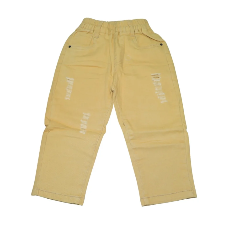Keep your little one comfortable and stylish with these boys’ full-length cotton twill pants. Designed for everyday wear, these trousers feature a soft and durable fabric that provides warmth while remaining gentle on kids’ skin. The elastic waistband ensures a snug yet flexible fit, making it easy for kids to wear independently. A modern distressed detailing on the front adds a trendy touch, while the straight-leg silhouette allows free movement for active play. Functional front and back pockets enhance practicality for daily use. Perfect for casual outings, playtime, or daily wear, these winter pants combine comfort, durability, and style—an ideal addition to any boy’s winter wardrobe.