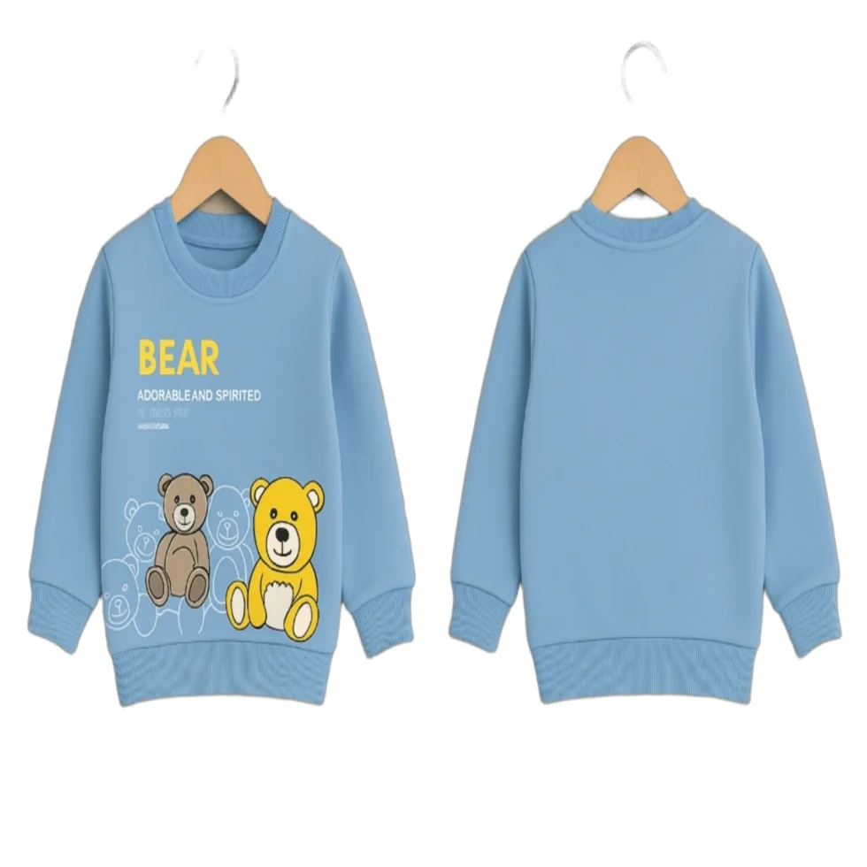 Keep your little one warm and stylish this winter with this boys’ winter sweatshirt featuring an adorable bear print. Designed with a soft and cozy fabric, this sweatshirt provides excellent comfort and warmth during chilly days.
