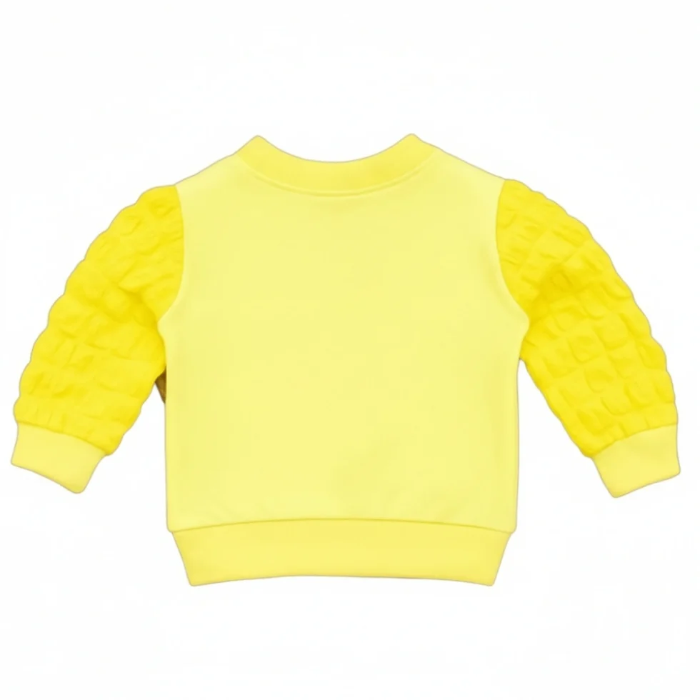 This girls’ top is crafted with soft and warm fabric to keep your little one comfortable. Designed with adorable puff-textured sleeves and a cute “Cool Summer” cartoon print, it adds a playful and stylish touch to everyday outfits. The ribbed neckline, cuffs, and hem ensure a comfortable and secure fit. Perfect for daily wear, outings, or casual occasions, this top combines warmth, comfort, and cute fashion in one must-have summer essential.