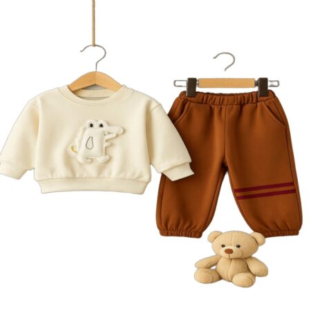 Baby Toddler 2-Piece Outfit Set – Long Sleeve Sweatshirt with Cute Animal Applique & Elastic Waist Jogger Pants, Cozy Casual Clothing Set