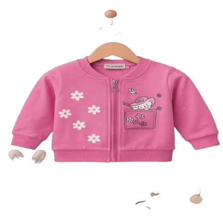 Baby Girls Zip-Up Sweatshirt Jacket – Soft Cotton Pink Jacket with Cute Cartoon Print, Casual Winter Wear